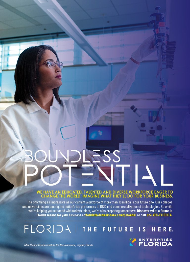 “Florida is the best state in the nation to do business,” said Bill Johnson, Florida Secretary of Commerce and president & CEO of EFI. “The state has a great business story and this campaign will allow us to tell that story in a way Florida never has. We are excited to share the state’s competitive advantages and let business leaders and decision makers around the world know that the future of business is in Florida.”