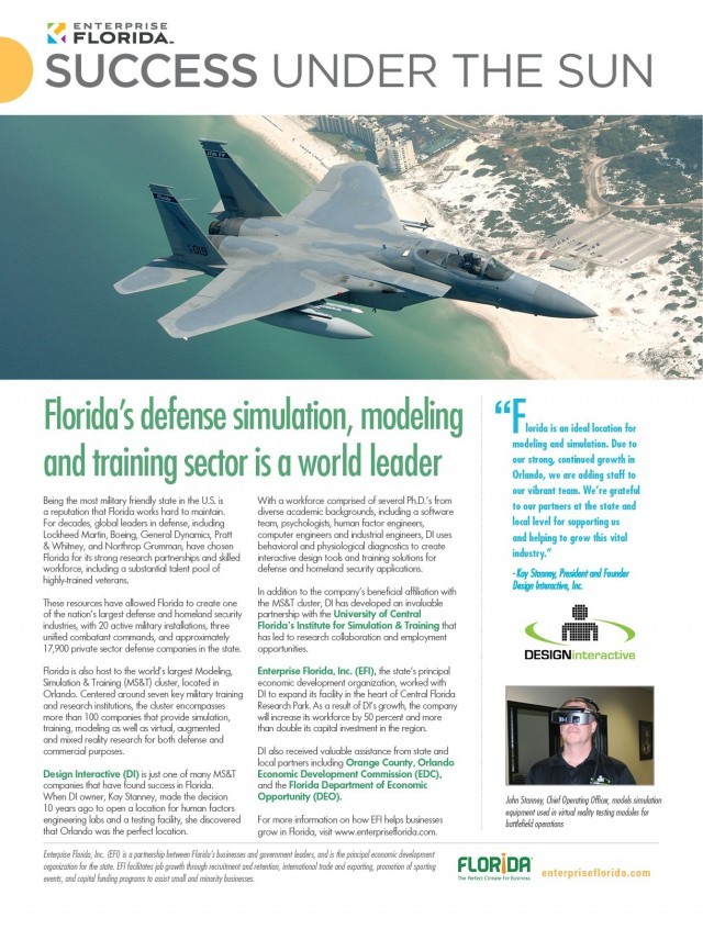 "Florida is an ideal location for modeling and simulation. Due to our strong, continued growth in Orlando, we are adding staff to our vibrant team. We’re grateful to our partners at the state and local level for supporting us and helping to grow this vital industry.” - Kay Stanney, President and Founder, Design Interactive, Inc.